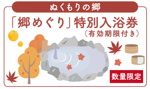 ぬくもりの郷「郷めぐり」特別入浴券(有効期限付き)を数量限定で販売いたします。