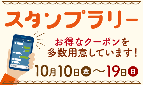 スマホを使ったスタンプラリー。お得なクーポンを多数用意しています!